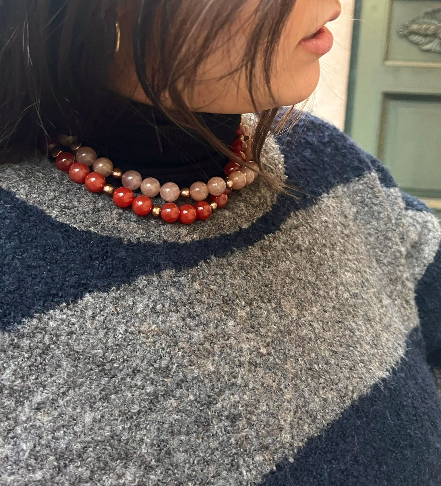 Agathe Necklace, a vibrant accessory available in two captivating colors: orange and pink agate stones. This chic piece effortlessly combines the natural beauty of agate with a choice of hues to suit your personal style. Make a statement with the Agathe Necklace—a versatile and elegant addition to your collection, perfect for adding a pop of color to any outfit.