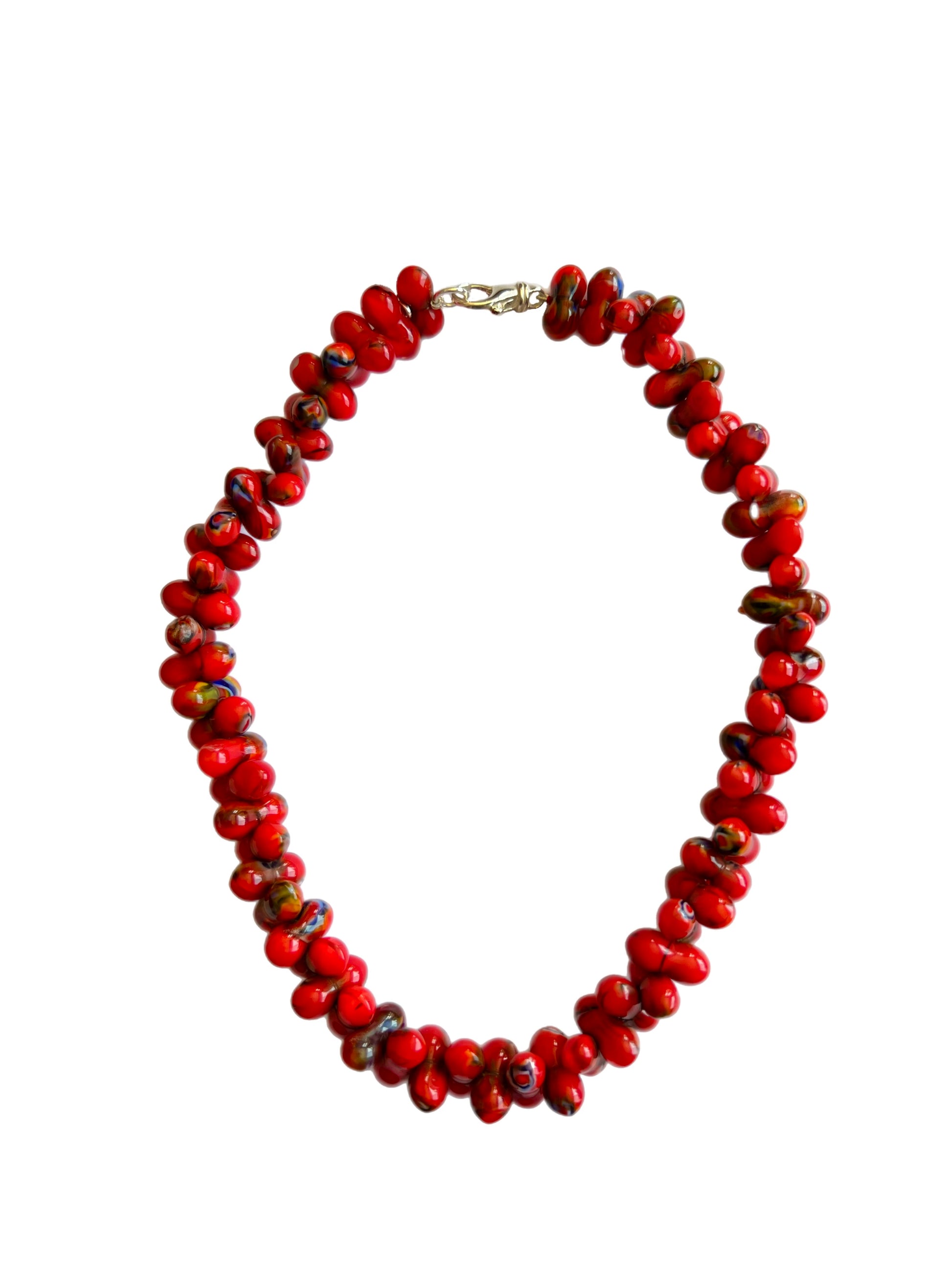 Introducing the Cherry Necklace: a delightful piece crafted with vibrant red glass beads, reminiscent of luscious cherries. This necklace exudes a playful and chic vibe, perfect for adding a pop of color to any outfit. It's a charming accessory that captures the essence of summertime sweetness.