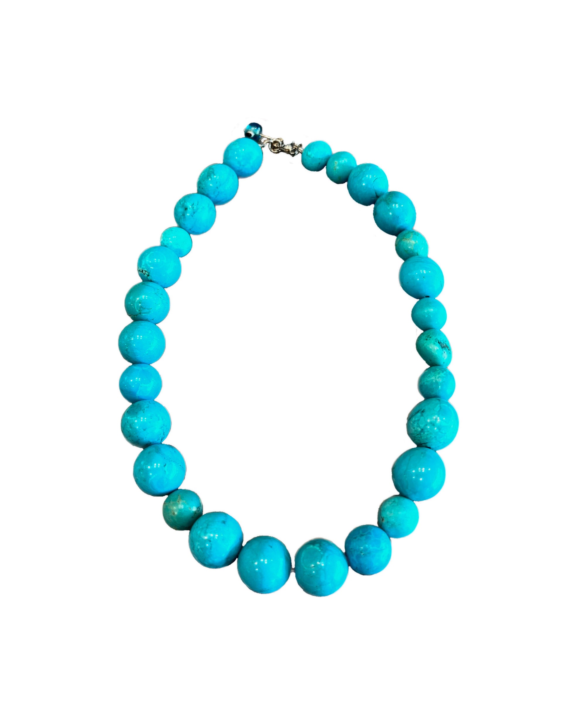 Each stone tells a story of its vibrant blue hues, creating a harmonious symphony of texture and color. Secured with a sleek silver closure, this necklace isn't just an accessory; it's a bold statement. Embrace the spirit of Florence, where the beauty of turquoise takes center stage in a timeless dance of sophistication.