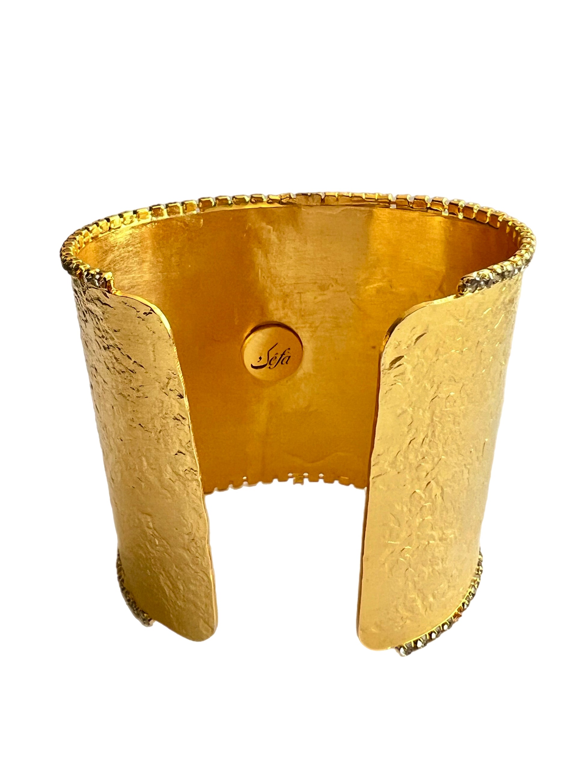 Add a touch of sparkle to your style with the Venus Gold Plated Hand Cuff with Strass. This petite, dazzling piece features intricate designs and shimmering strass accents, perfect for any occasion. Whether for special events or daily chic, the Venus Cuff brings a playful elegance to your look.